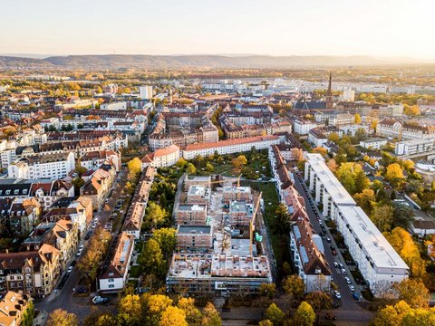 (Damit sind die bewährten Bestandsgebäude der Blockrandbebauung, die modernisierten Hauszeilen in der Emil-Gött-Straße und die neue Wohnanlage am Fasanengarten gemeint)